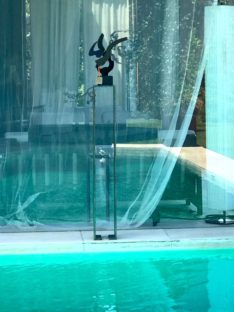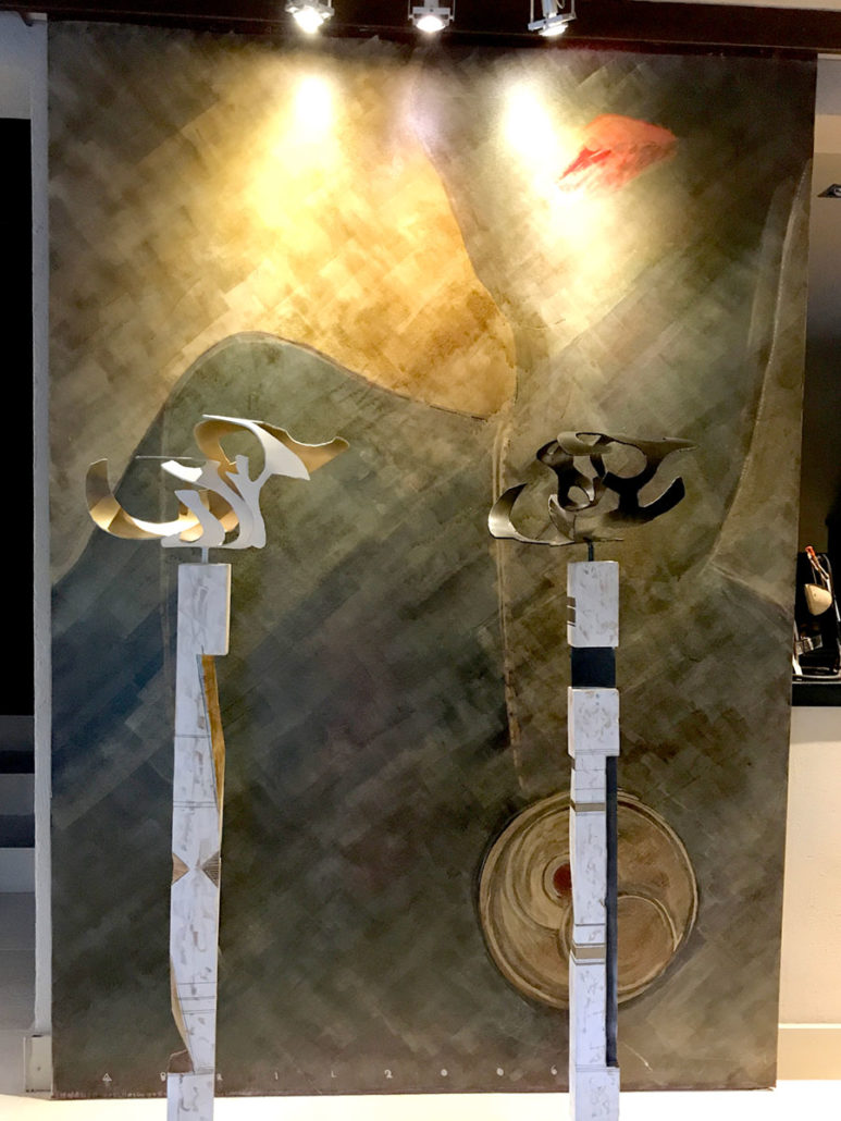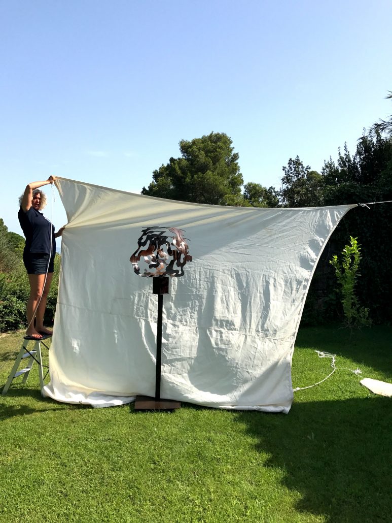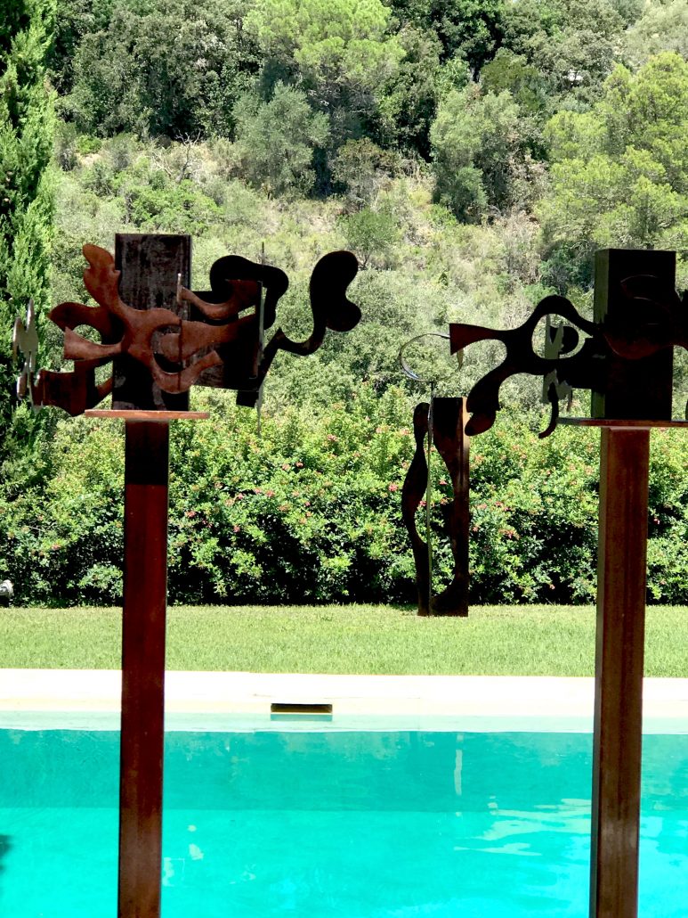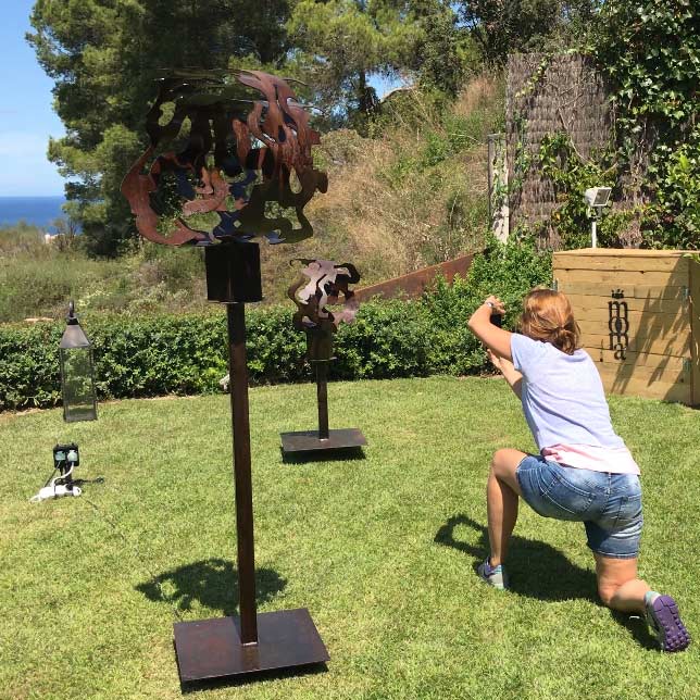 Her sculptures which are made of curved, folded, and twisted iron, form feminine and organic figures and shapes. All her works reflect ongoing transformation, the sensual waves of the Mediterranean, and harmonious movement.