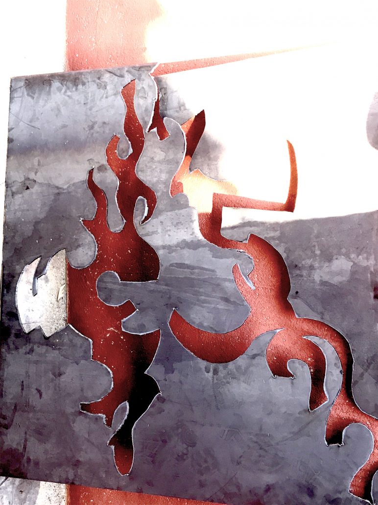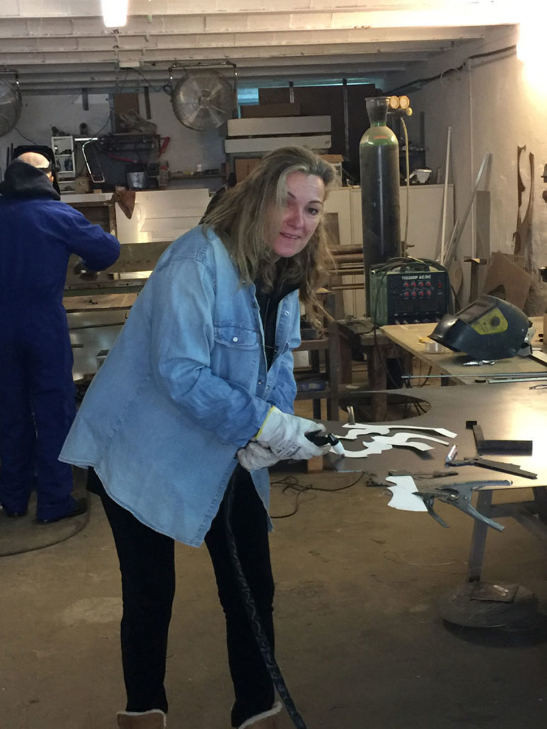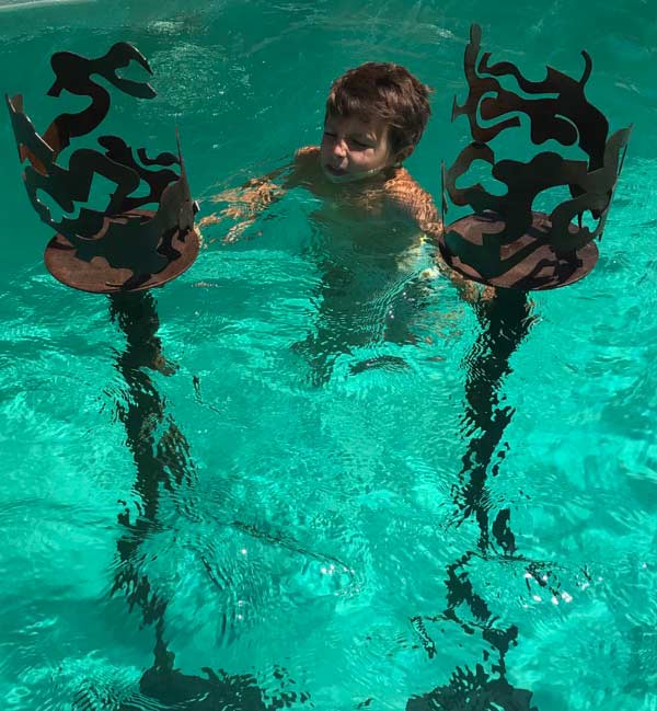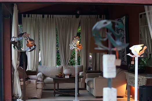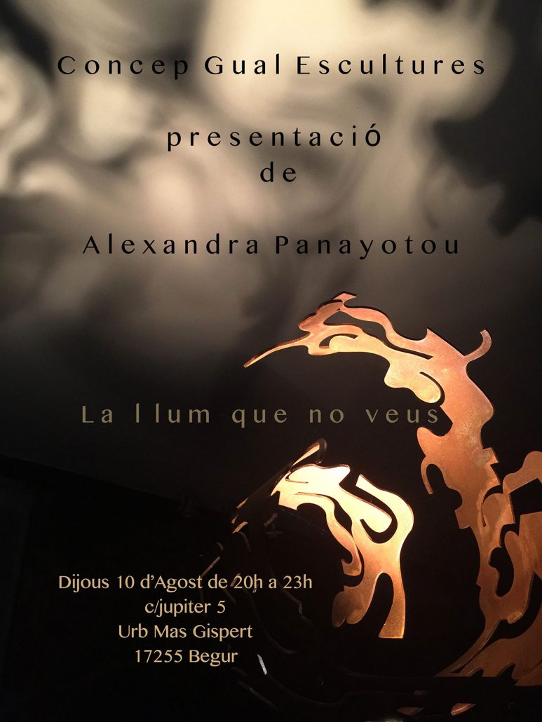 Her sculptures which are made of curved, folded, and twisted iron, form feminine and organic figures and shapes. All her works reflect ongoing transformation, the sensual waves of the Mediterranean, and harmonious movement.